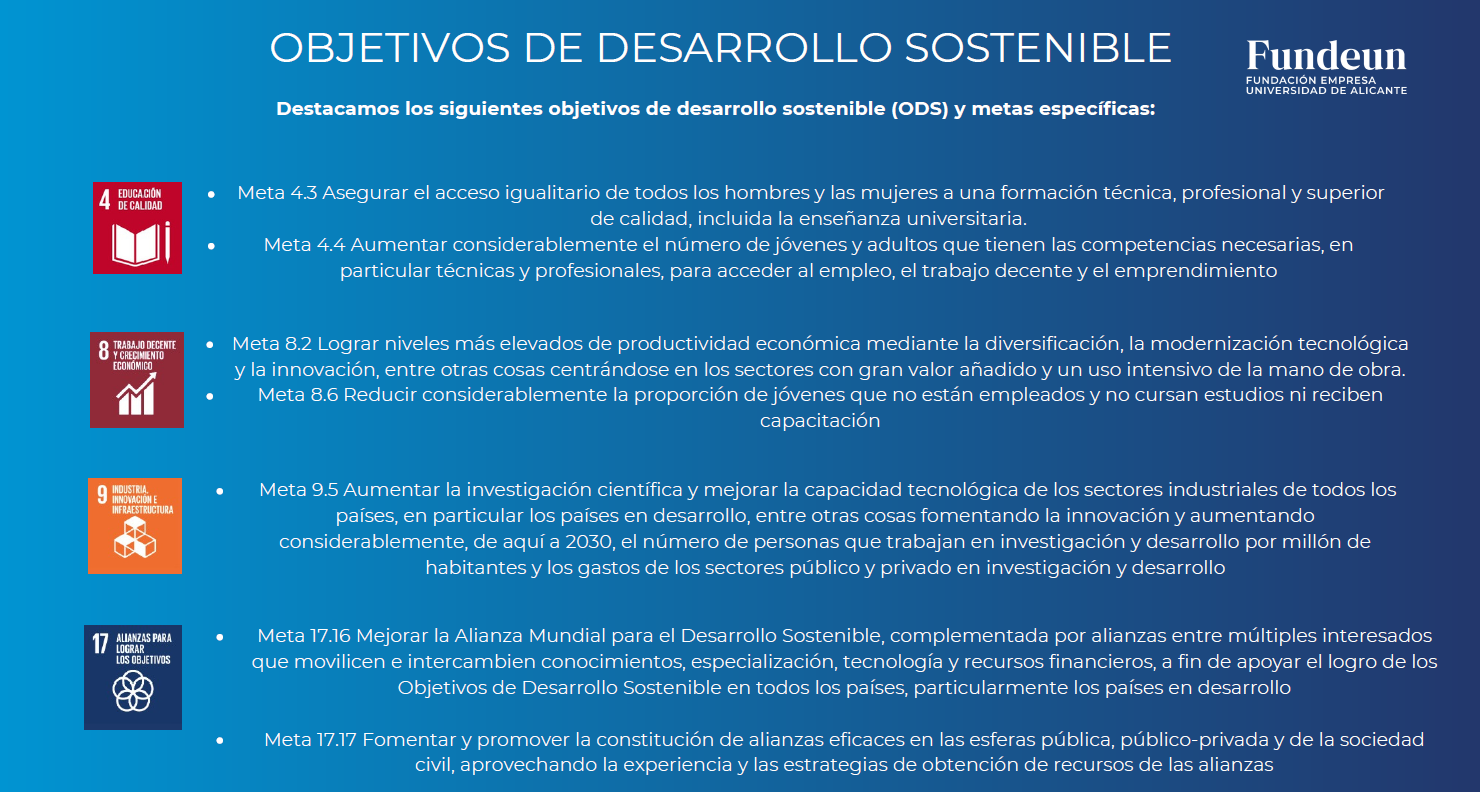 Facilitar la incursión de universitarios al mundo laboral mediante su formación y prácticas a través de masters y cursos de especialización ajustándose a la demanda de los sectores industriales.